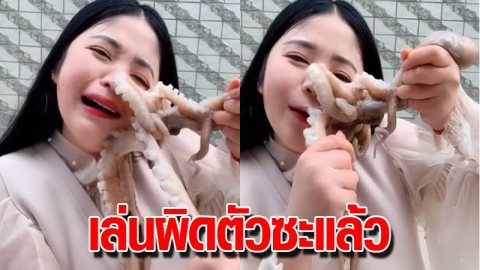 บล็อกเกอร์สาวชาวจีน โชว์กินปลาหมึกสดเป็นๆ แต่งานนี้โดนเอาคืน (คลิป)