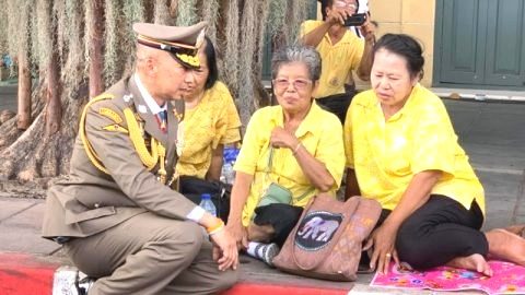 นายตำรวจใหญ่เหรียญยศเต็มอก นั่งจับเข่าคุยประชาชนรอรับเสด็จฯ และเป็นภาพที่สร้างความประทับใจให้กับผู้คนที่พบเห็น