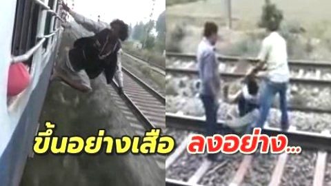 ชายพิเรนทร์ออกไปโหนตัวนอกรถไฟ ทำผู้โดยสารสุดรำคาญ โดนลากมากระทืบยับ
