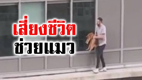 รักแมวยิ่งกว่าชีวิตตน หนุ่มออกไปนอกระเบียงสูง 6 ชั้น ช่วยชีวิตเหมียวส้มสุดที่รัก