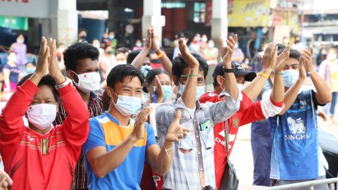 ต้อนรับคึกคัก! สมุทรสาคร ส่งตัวแรงงานข้ามชาติ 292 คน ปลอดเชื้อโควิด-19 กลับตลาดกลางกุ้ง
