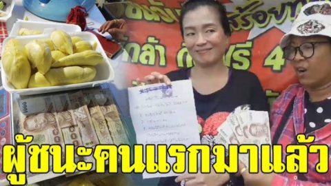 ผู้ชนะคนแรกมาแล้ว สาวบริษัท รปภ. พิชิตทุเรียน 4 กิโลกรัม คว้าเงินรางวัล 5,000 ได้สำเร็จ
