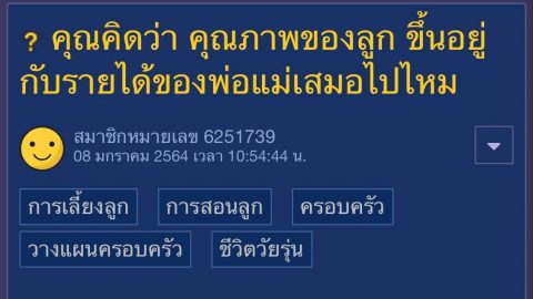 คุณคิดว่า คุณภาพของลูก ขึ้นอยู่กับรายได้ของพ่อแม่เสมอไปไหม?