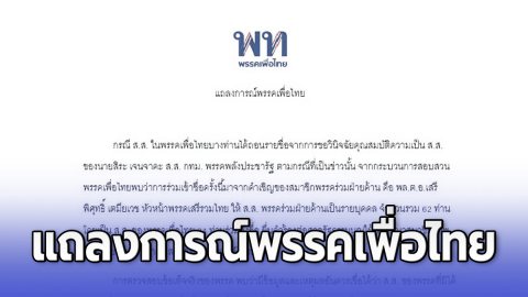 แถลงการณ์พรรคเพื่อไทย กรณี ส.ส. ในพรรคเพื่อไทยบางท่านได้ถอนรายชื่อจากการขอวินิจฉัยคุณสมบัติความเป็น ส.ส.