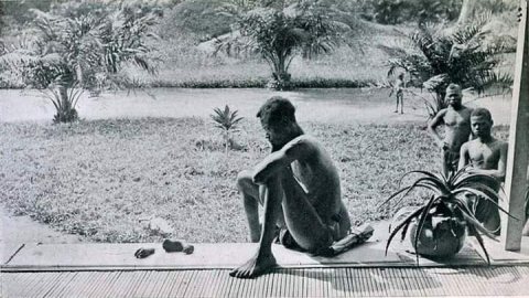 พ่อที่จ้องมองมือและเท้าของลูก ห้าขวบ เนื่องจากถูกลงโทษที่ทำยางได้ไม่ถึงโควต้าที่กำหนดไว้