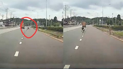 หนุ่มขับรถกลับบ้าน ใจหาย! นร.ลูกเสือวิ่งตัดหน้า แต่จู่ ๆ เปลี่ยนใจวิ่งกลับ ลั่น ดีที่ตกใจอยู่ ไม่งั้นจับดีดมะกอกแน่