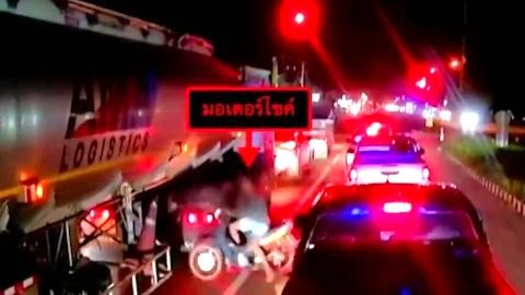 วิจารณ์ยับ!หนุ่มขับรถมอเตอร์ไซค์ลอดใต้ท้องรถส่งน้ำมัน