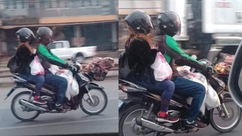 ไม่หรูแต่ดูมีความสุข สองสามี-ภรรยา ขับมอไซต์แบกของพะรุงพะรังกลับจากบ้านช่วงหยุดสงกรานต์