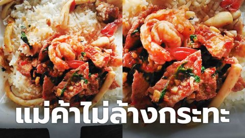 สาวเซ็ง!! สั่งกระเพรา แม่ค้าไม่ล้างกระทะ พริกแกงโผล่เพียบ
