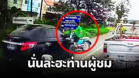 จะเกิดอะไรขึ้นเมื่อ เก๋งขับไหล่ทาง VS จยย.ขี่ย้อนศร