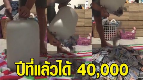 จำได้ไหม หนุ่มเก็บเงินไว้ในถัง ปีที่แล้วได้4หมื่น ล่าสุดเทออกมานับ ผิดคาดแรง