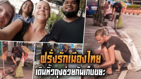 ชื่นชม 2 นักท่องเที่ยวต่างชาติ เดินหิ้วถุงช่วยกันเก็บขยะ หลังจบสงกรานต์ที่สุโขทัย
