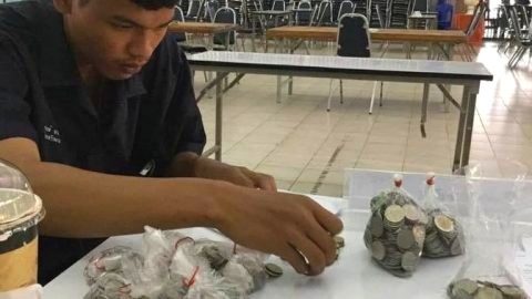 ภาพประทับใจ หนุ่มนักศึกษานำเงินมาลงทะเบียนเรียน ล้วนแต่เป็นเงินเหรียญที่เก็บออมมาทั้งสิ้น