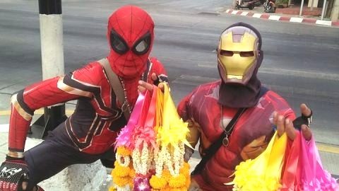ฮีโร่ในชีวิตจริง!! มาลัยฮีโร่ พ่อค้าขายพวงมาลัยในคราบสไปเดอร์แมน(คลิป)