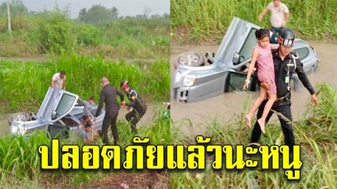 ขวัญเอ้ย ขวัญมานะลูก สารวัตรทหารบก และชาวบ้าน รุดช่วยหนูน้อยได้ทันเวลา หลังรถเสียหลักตกคลองชลประทาน