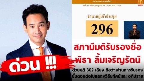 ด่วน ! สภามีมติรับรองชื่อ พิธา เป็นแคนดิเดตนายกเพียงคนเดียว ในการโหวตเลือกวันนี้