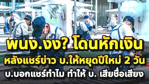 พนง.สุดงง แชร์ข่าวบ.ให้หยุด 2 วัน 31 ธ.ค 66 -1 ม.ค. 67 บ.เรียกไปคุย-หักเงิน บอกแชร์ทำไม ทำให้บ.ชื่อเสียง