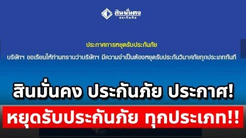 ด่วน! สินมั่นคง ประกันภัย ประกาศผ่านเวบไซต์ แจ้งหยุดรับประกันภัย ทุกประเภท!!
