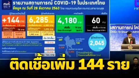 แถลงสถานการณ์โควิด-19 วันที่ 28 ธันวาคม 63 ติดเชื้อเพิ่ม 144 ราย