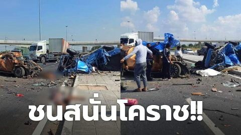 ชนสนั่นโคราช!! กระบะพุ่งข้ามเลน ชนยับ ดับ 2 สาหัส 1