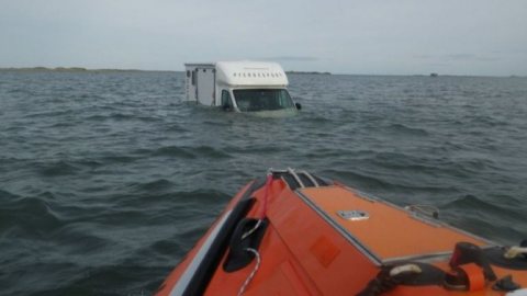กลับไม่ได้ไปไม่ถึง กู้ภัยช่วยคนขับรถบนทางหลวงในช่วงน้ำขึ้นสูง