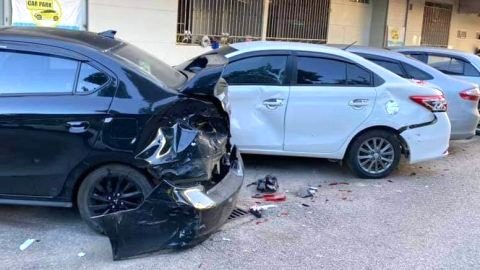 ชนสนั่น!! กระบะแดง ชนกวาด 3 คันพังยับ ก่อนหนีหาย