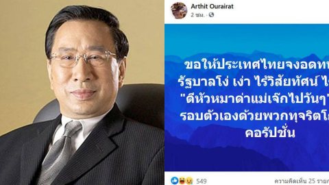 "ดร.อาทิตย์" โพสต์แรง! ขอให้ประเทศไทยจงอดทน ที่มีรัฐบาลโง่เง่า ไร้วิสัยทัศน์ "ตีหัวหมาด่าแม่เจ๊กไปวันๆ"
