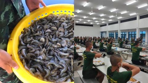 กองทัพบก ช่วยเหลือเกษตรกร ซื้อกุ้งมาทำอาหารมื้อพิเศษ เลี้ยงกำลังพล