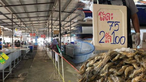 "ตลาดเทิดไท" อาหารทะเลขายไม่ออก ล่าสุด กุ้ง 2 โล 100
