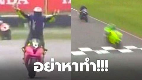 อย่าหาทำ!! นักแข่งจักรยานยนต์ ชูมือฉลอง ก่อนถึงเส้นชัย...สุดท้ายโดนแซงตกอันดับ (มีคลิป)