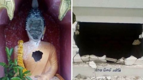 เถื่อนถ่อยหนัก! วัยรุ่นทำลายพระพุทธรูปในวัดดังจ.ปัตตานี