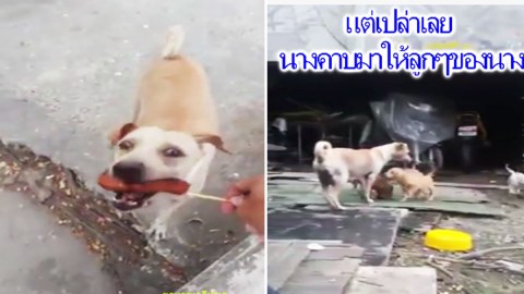 สุดซึ้ง วินาที "แม่หมาคาบเอาอาหารมาให้ลูกน้อยกิน.."แม้แต่หมายังรักลูก" (ชมคลิป)