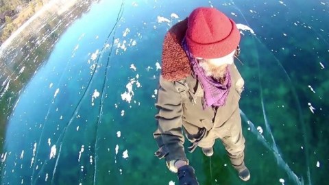 เดินไปบนทะเลสาบที่ลึกที่สุดในโลกในรัสเซีย