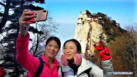ได้เวลาเที่ยว! นักท่องเที่ยวแห่ปีนเขา “ฮั่วซาน” ยามอากาศอบอุ่นเป็นใจ