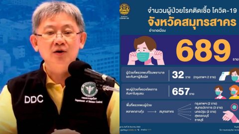 จำนวนผู้ป่วยโรคติดเชื้อ โควิด-19 ในอำเภอเมืองสมุทรสาคร จังหวัดสมุทรสาคร และพื้นที่เสี่ยง รวม 689 ราย