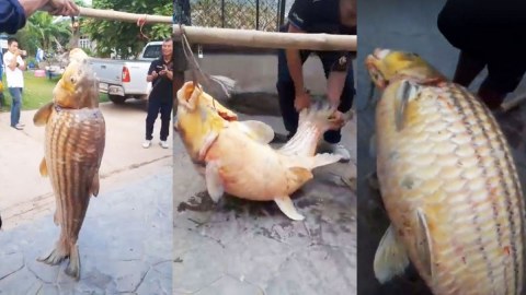 นาที ชาวบ้านจับปลายักษ์หนัก 50 โล ได้จากลำน้ำโขง
