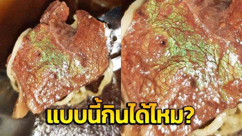 สั่งก๋วยเตี๋ยวเนื้อตุ๋นมา เนื้อมีสีเขียวแบบนี้ มันคืออะไร กินได้มั้ย?