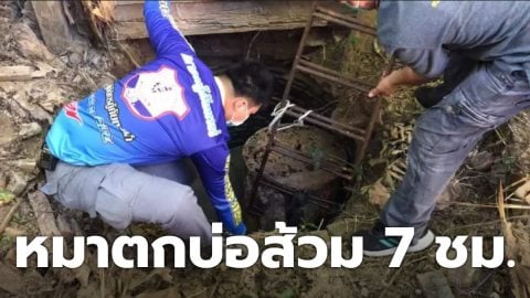 พลุปีใหม่ดังสนั่น! น้องหมาตกใจ ตกบ่อส้วมโบราณ แช่น้ำนาน 7 ชม.