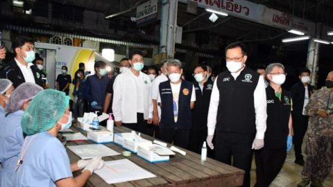 "อนุทิน" ลุยตรวจโควิด-19 ตลาดกลางค้ากุ้ง สมุทรสาคร พบผู้ติดเชื้อ 13 ราย