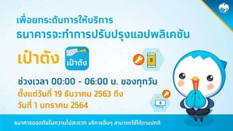 กรุงไทย ประกาศแจ้งเตือน ใช้แอปเป๋าตังไม่ได้ 13 วัน ในเวลา 00.00 - 06.00 น.