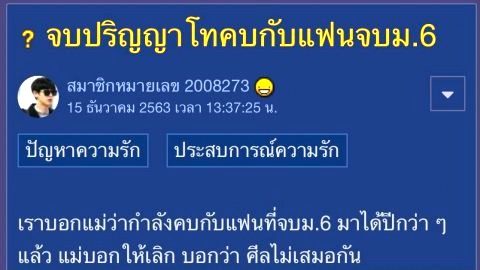 จบปริญญาโทคบกับแฟนจบม.6 แม่บอกให้เลิก..