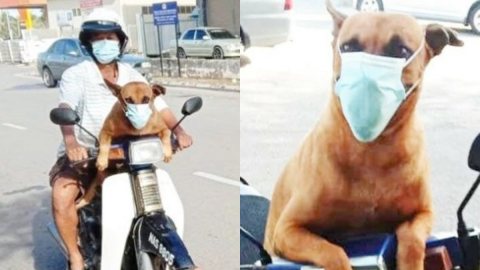 ตูบแสนรู้! ใส่หน้ากาก ก่อนออกไปแว้นกับเจ้าของ
