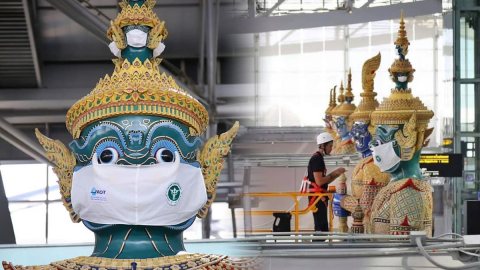 อินเทรนด์สุดๆ ยักษ์ท่าอากาศยานสุวรรณภูมิ สวมหน้ากากป้องกัน Covid-19