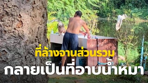 หนุ่มเซ็ง โพสต์ภาพ พร้อมแคปชั่น "ที่ล้างจานส่วนรวม กลายเป็นที่อาบน้ำหมา"
