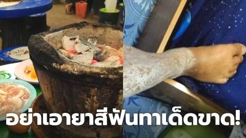 ชาวเน็ตเตือน!! อย่าเอายาสีฟันทาเด็ดขาด!! หลังสาวทำหมูกระทะ คว่ำ ใส่ขาแฟน แล้วใช้ยาสีฟันถู