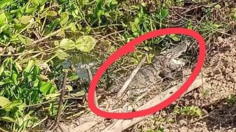 ตะลึงตาค้าง!! คนหาปลาพบจระเข้ยักษ์นอนอ้าปากอาบแดด ที่ปราจีนบุรี!!