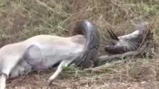 คายเหยื่อออกจากปากแทบไม่ทัน!! เมื่อนักล่าอย่าง "งูเหลือม" ต้องมาเสียท่าแบบเกือบเอาชีวิตไม่รอด ขณะกำลังเขมือบ "ละมั่ง"
