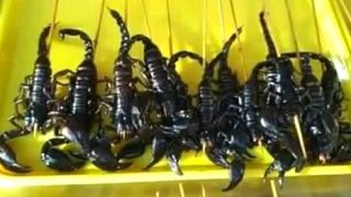 เชื่อกันว่าเป็นสมุนไพร เพิ่มพลังชายให้คึก!อึด ทน! ตะขาบ งู แมงมุม แมลงป่อง เสียบไม้ขาย