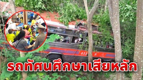 ด่วน! รถบัสบรรทุกนักเรียนทัศนศึกษาเสียหลัก ตกลงข้างทางช่องเขา เบื้องต้นบาดเจ็บ 10 ราย
