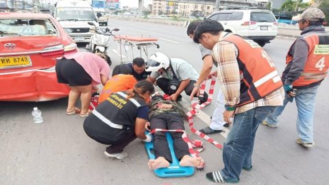 เกิดอุบัติเหตุหน้า ม.กรุงเทพ ชายหนุ่มบาดเจ็บ 1 ราย